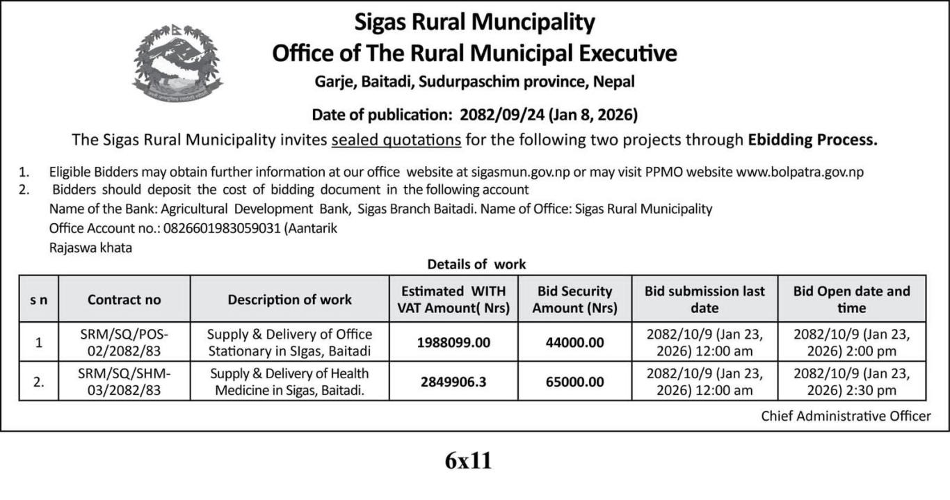 सार्वजनिक खरिद/बोलपत्र सूचना