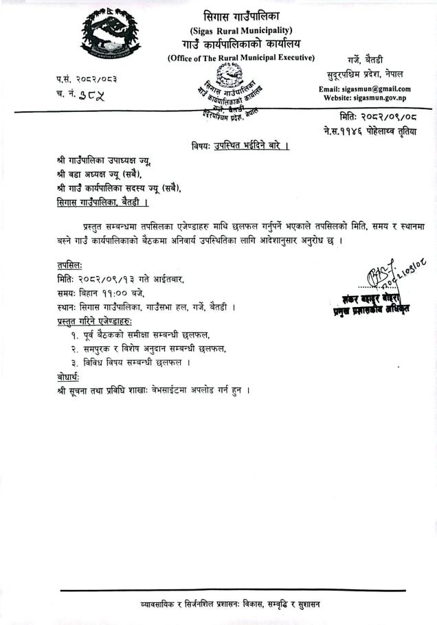 » गाउँ कार्यपालिका बैठकमा उपस्थित भईदिने बारे।